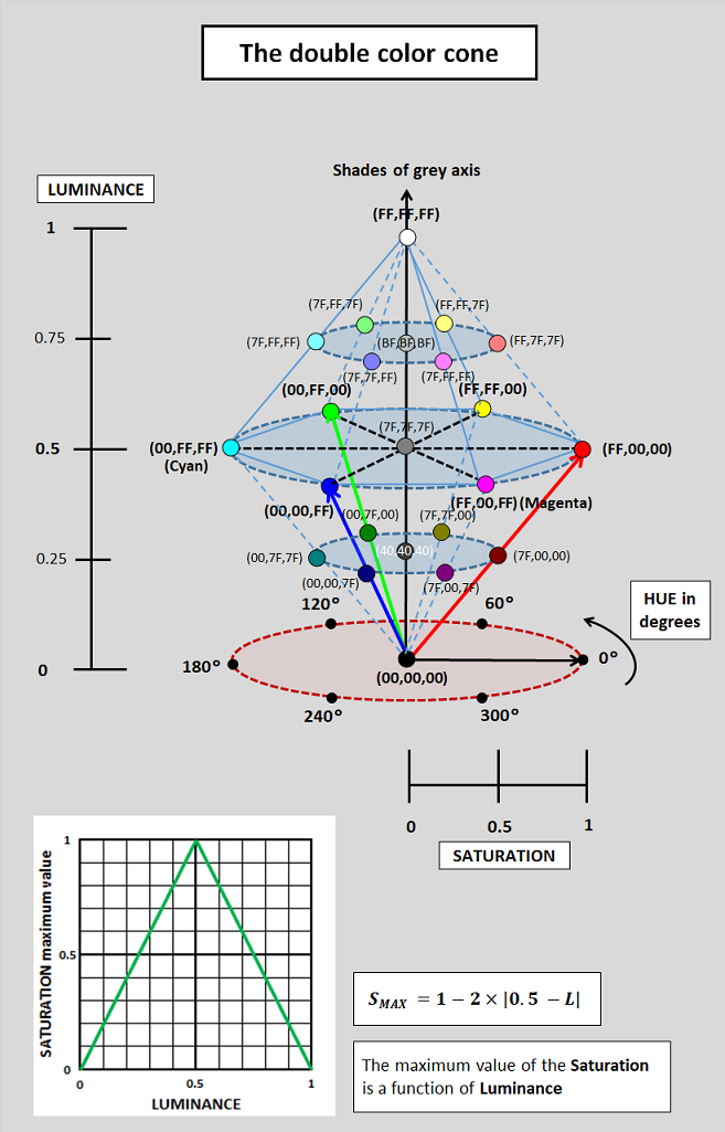 Luminance and Saturation for Hue = 180° (Cyan)