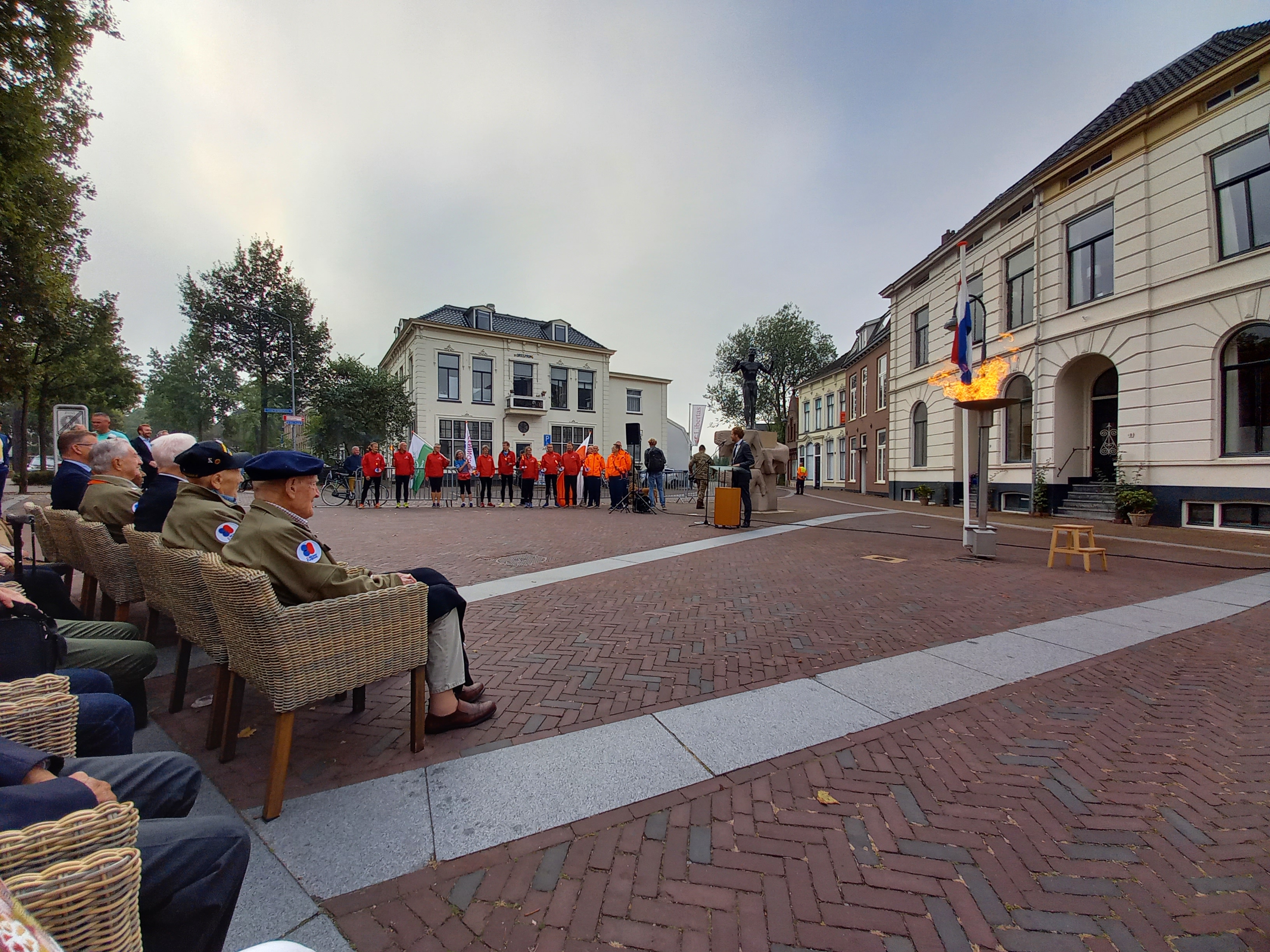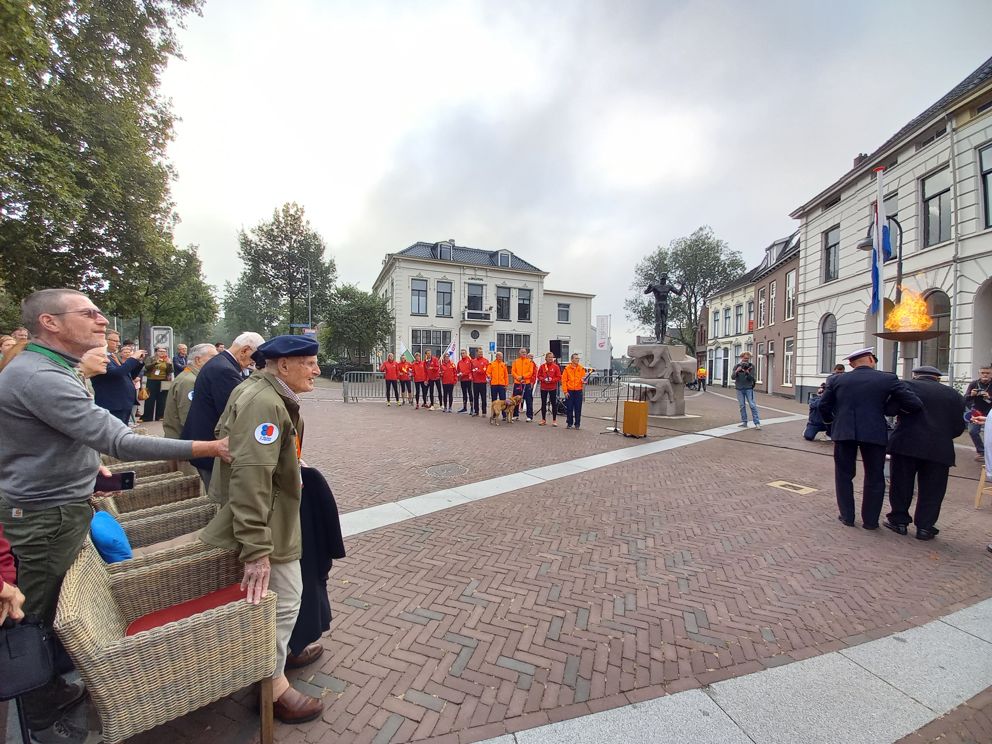 | De bevrijdingsvlam wordt ontstoken in het bijzijn van veteraan Gilbert Clarke (1925) |