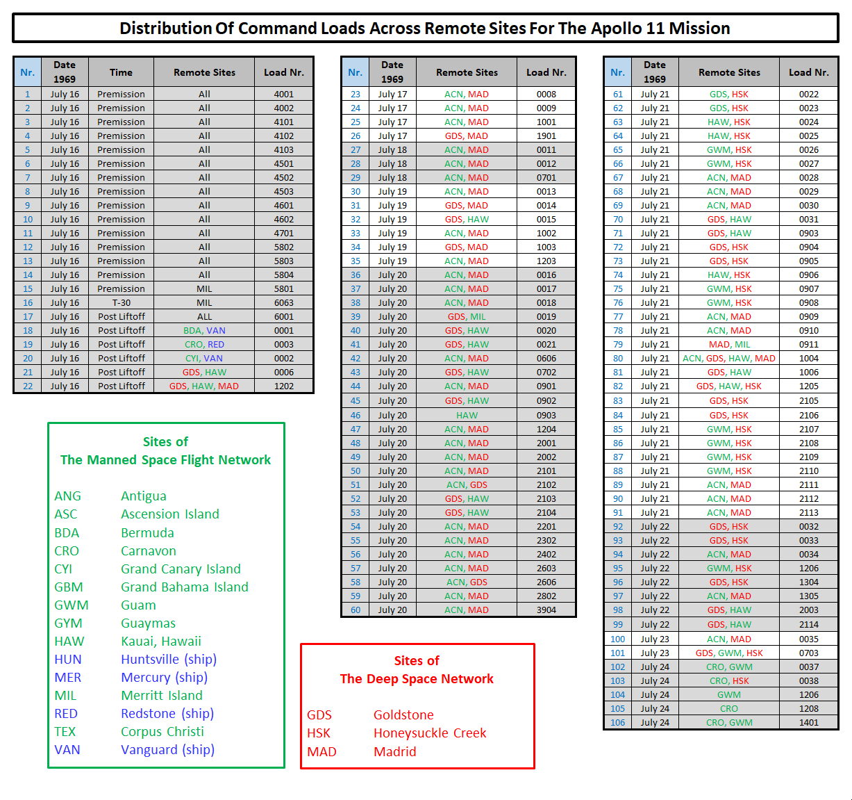 When they have gone through the generation process, the command loads were transferred to various remote sites, if not to all, on request of the MOCR controller.